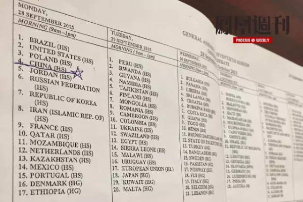 据一位匿名的联合国官员介绍,由于参会的各国元首和政府首脑人数很多,因此一般性辩论顺序安排很有技术性。按照联大一个不成文的规定,每年一般性辩论的第一个国家都是巴西。这个安排缘于联大成立时的一个插曲,由于当时没有国家元首愿意第一个发言,于是各国商定,谁第一个讲话,今后联大发言的“首发”资格都归该国所有。巴西总统当时自告奋勇,于是,之后70年的每次联大会议,一直是巴西国家元首第一个发言。第二个发言的是联大主办地所在的国家,于是美国永远排在第二位登场。由于美国在国际上树敌不少,每次美国总统发言,听众席要么喧哗骚动,要么发声抗议,甚至是退场离席,场面较为尴尬。而第三个发言的国家往往受此影响,台下各国代表注意力尚未集中。在这位官员看来,第四个发言的应该是一个“黄金排位”。“大家注意力重新集中,又没有听觉上的疲劳感。”